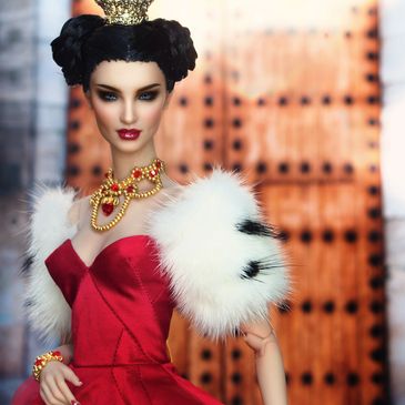 Debuting at Monarchy Convention 2018 Rosalind of Durham (The Red Queen) and Reign the table centrepiece doll.